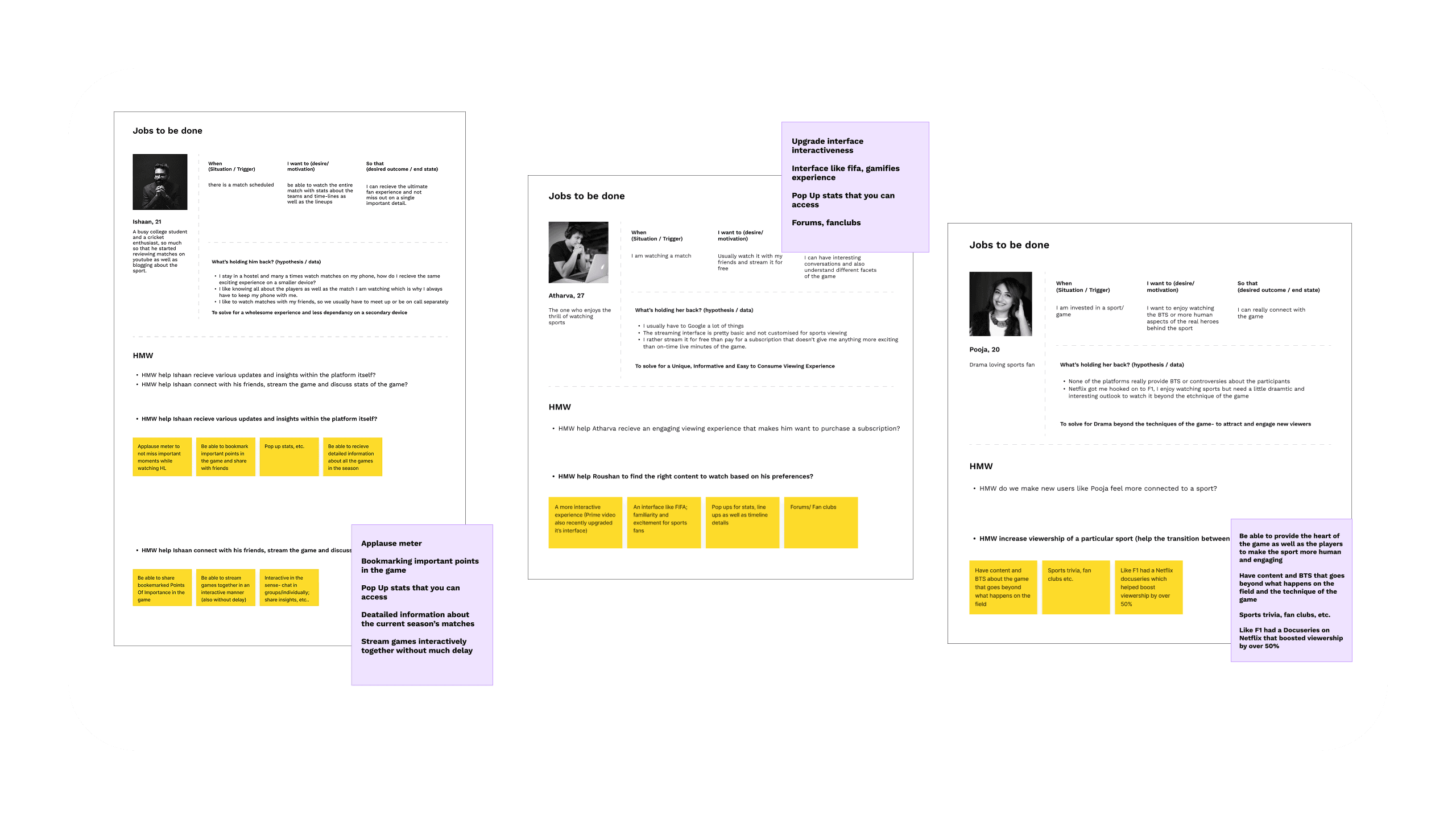 Brainstorming interventions that could apply across NBA, NHL, NFL, and regional sports—ensuring ideas were adaptable within a white-label platform.Client-Facing Validation