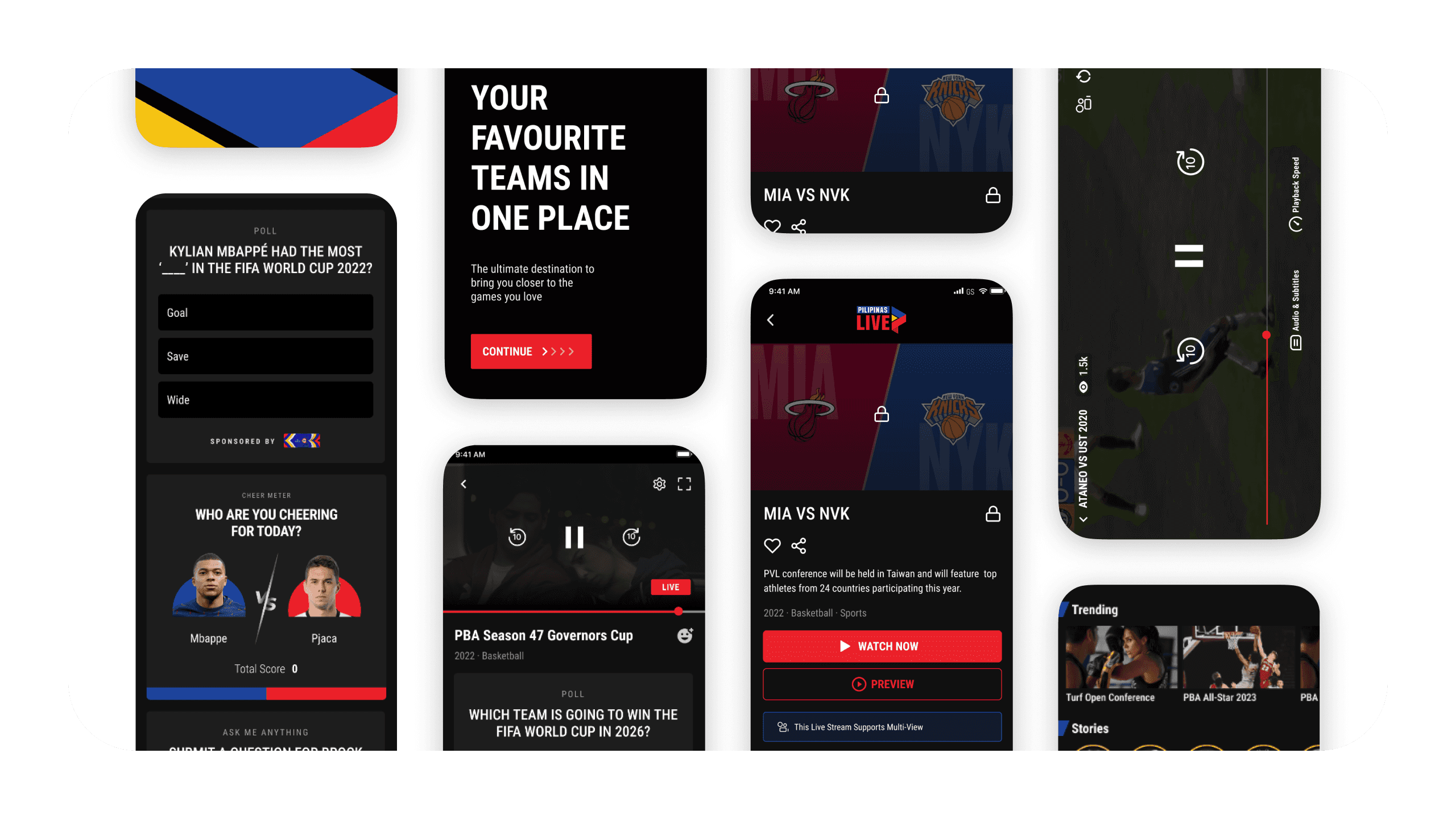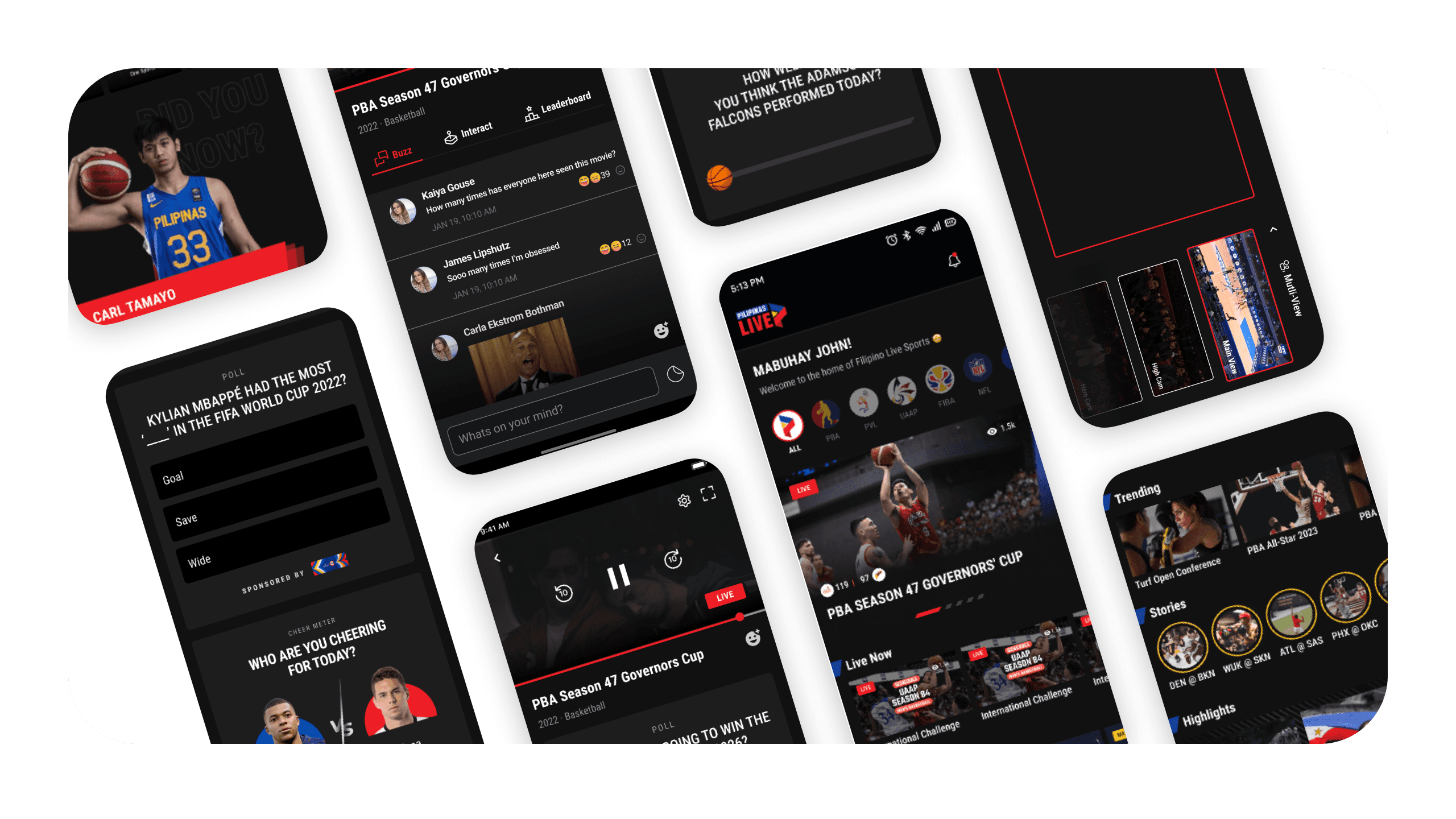 Before Pilipinas Live, our team explored live sports interaction concepts across multiple leagues (NBA, NHL, NFL), focusing on: